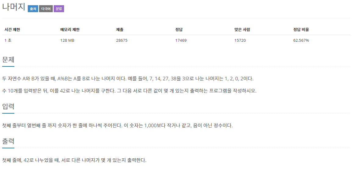 → 42 크기의 배열을 생성하여 서로 다른 값의 개수 출력.
